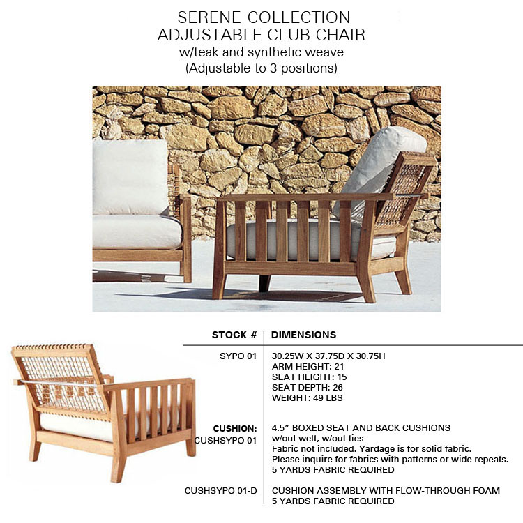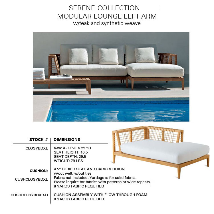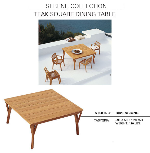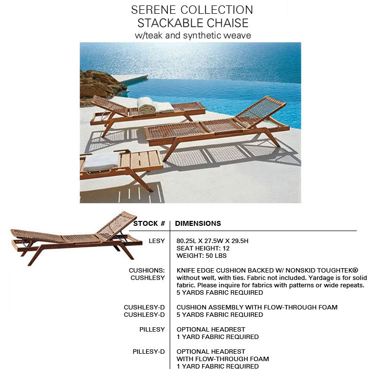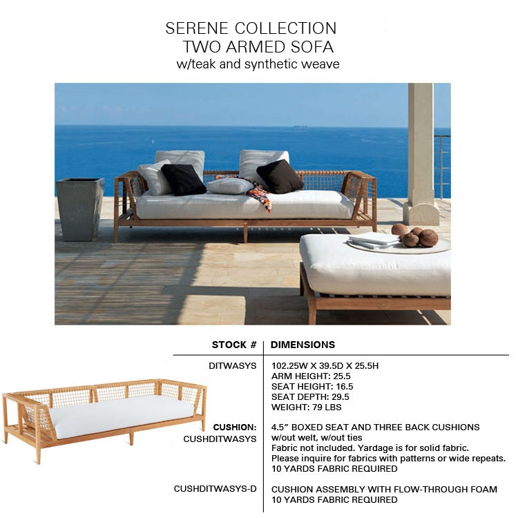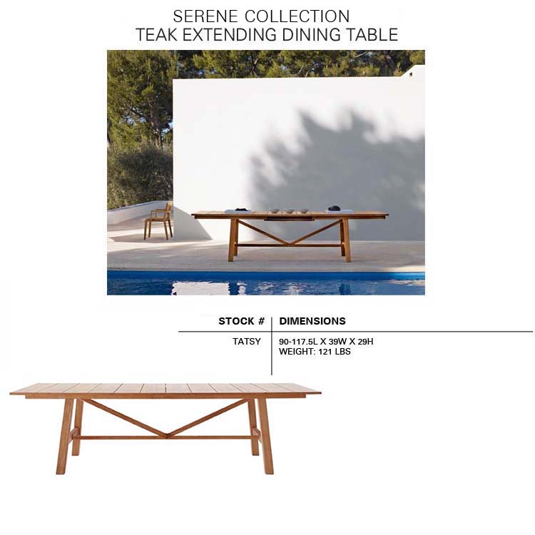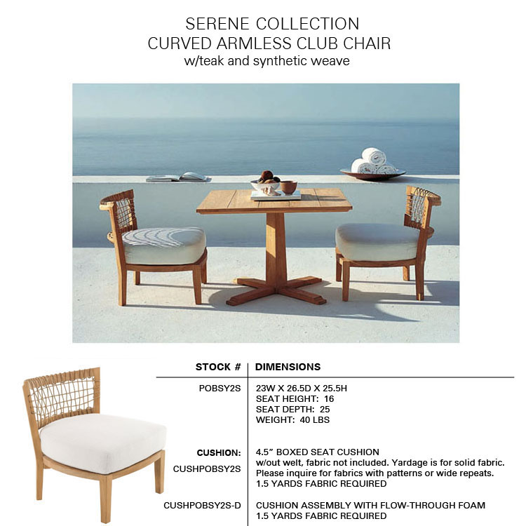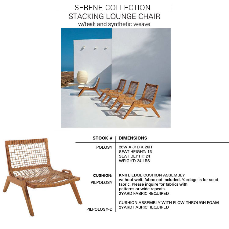 The SERENE Collection combines teak and Waprolace. The teak comes from sustainable plantations and the Waprolace is a handwoven synthetic fiber that is 100% recyclable.