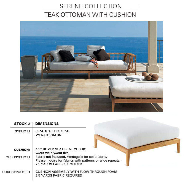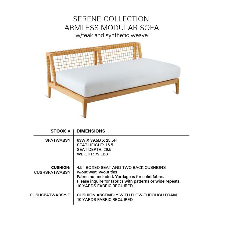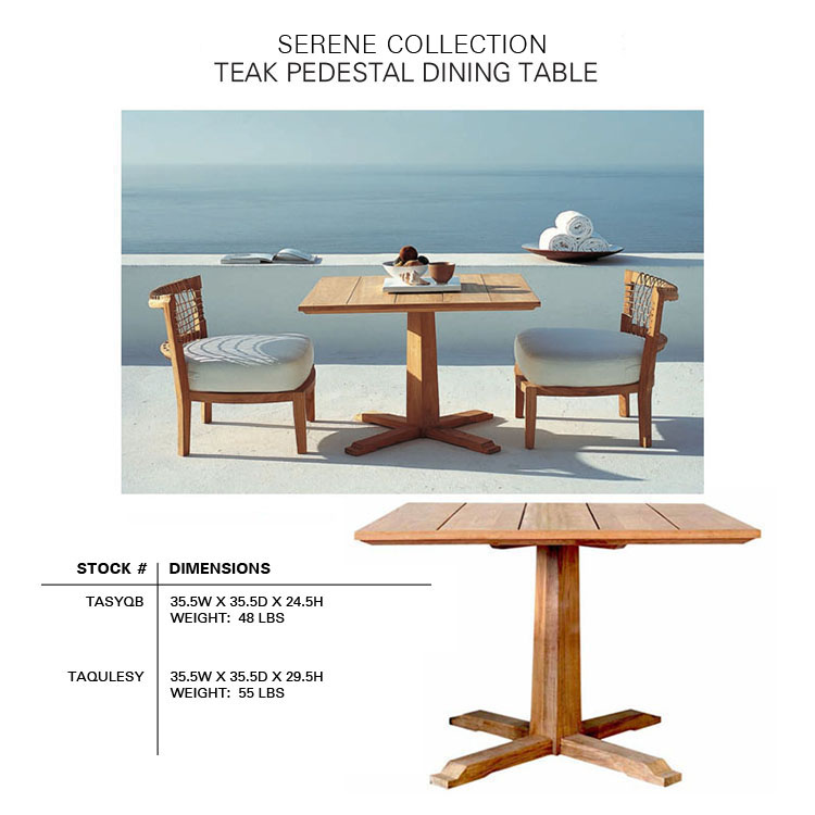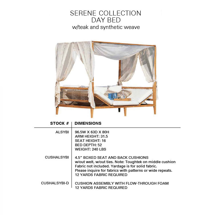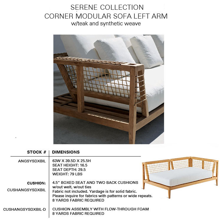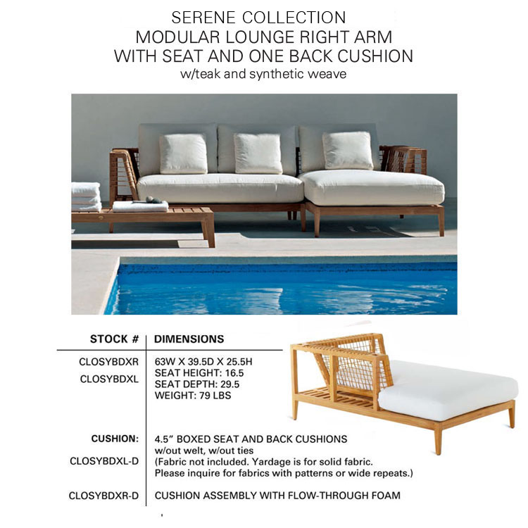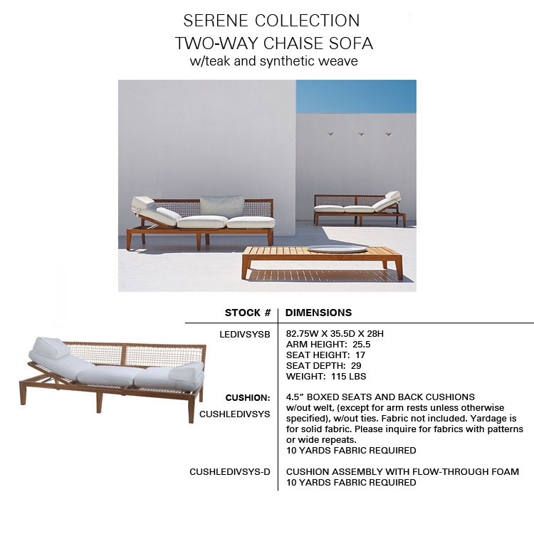 The SERENE Collection combines teak and Waprolace. The teak comes from sustainable plantations and the Waprolace is a handwoven synthetic fiber that is 100% recyclable.